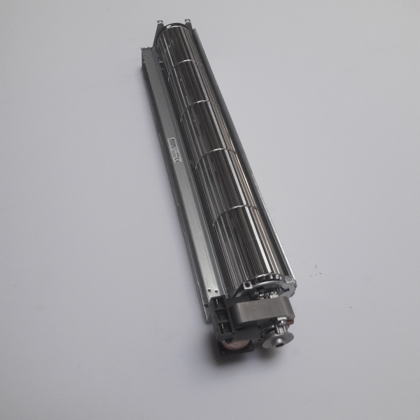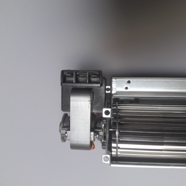 In a tangential blower, the air is drawn in over the entire length of the fan impeller. Inside the impeller, the airflow is diverted and accelerated by the vortex created by the rotation of the impeller.