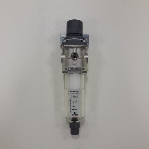 Pressure regulator to adjust supply (or inlet) pressure to a lower outlet pressure and work to maintain this outlet pressure despite fluctuations in the inlet pressure. The transparent filter bowl allows an easy monitoring of the condensate level. The semi-automatic manual drain makes both the manual and automatic condensate exhaust easier when there is no pressure.